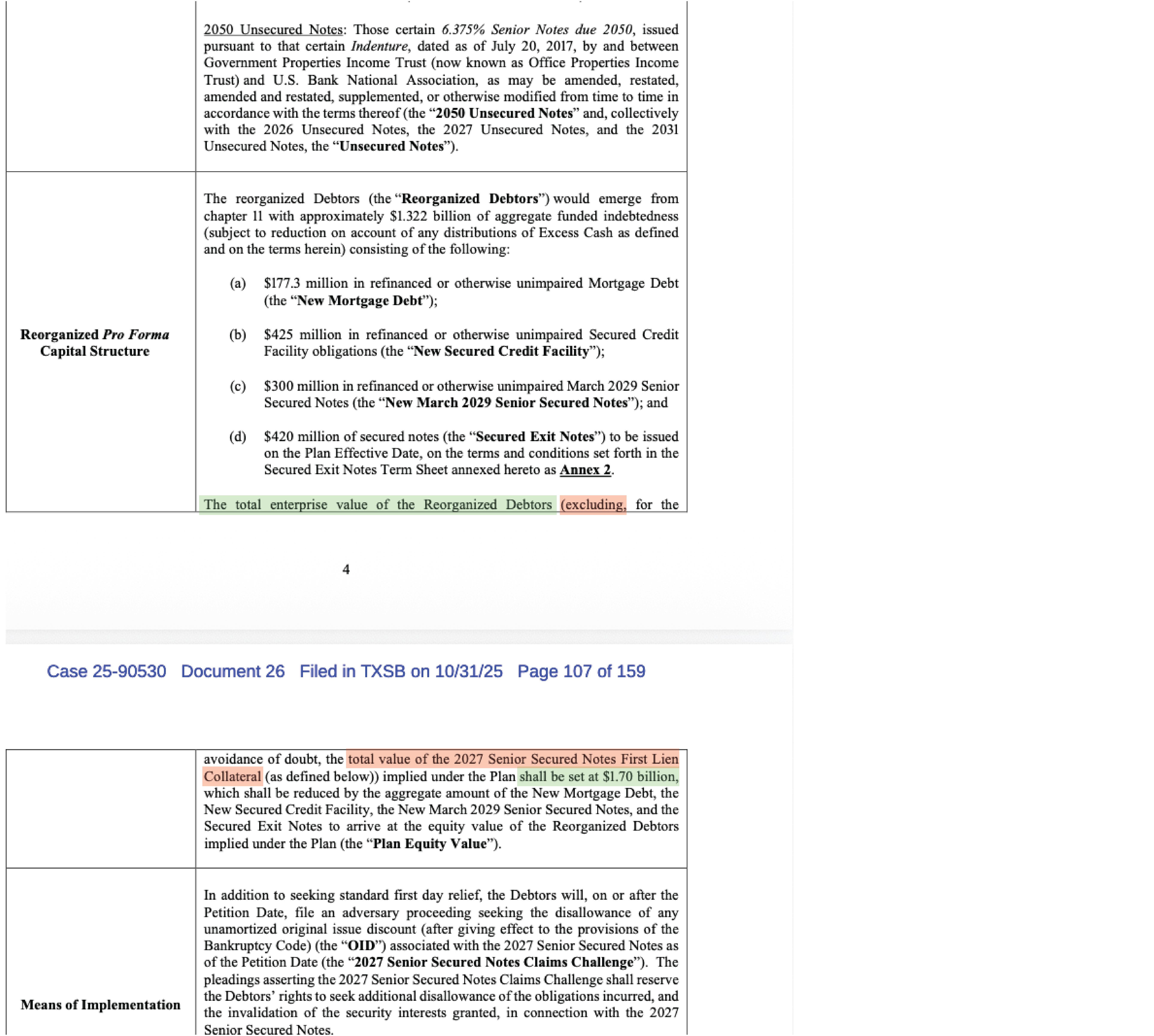 - The fact that it excludes the 2027 Senior Secured Notes First Lien Collateral while the Secured Debt section of the Prepetition Capital Structure above includes $418mm of outstanding principal for “March 2027 Notes.”